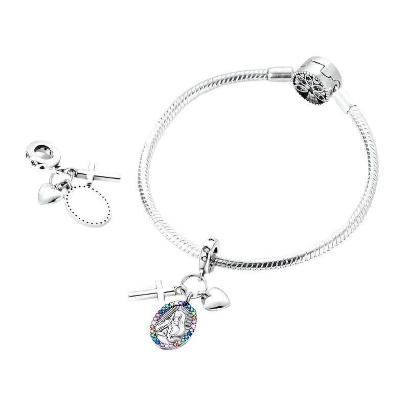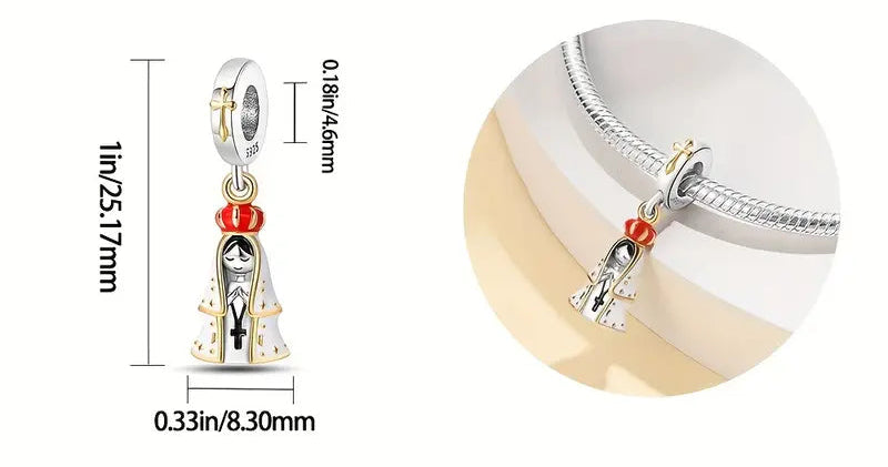 Dale un toque de elegancia y alegría a tu pulsera de charms con este charm de auténtica plata de ley 925. Perfecto para mujeres que buscan destacar y darle un toque único a sus collares y pulseras, a la vez que viven la devoción católica a la moda.