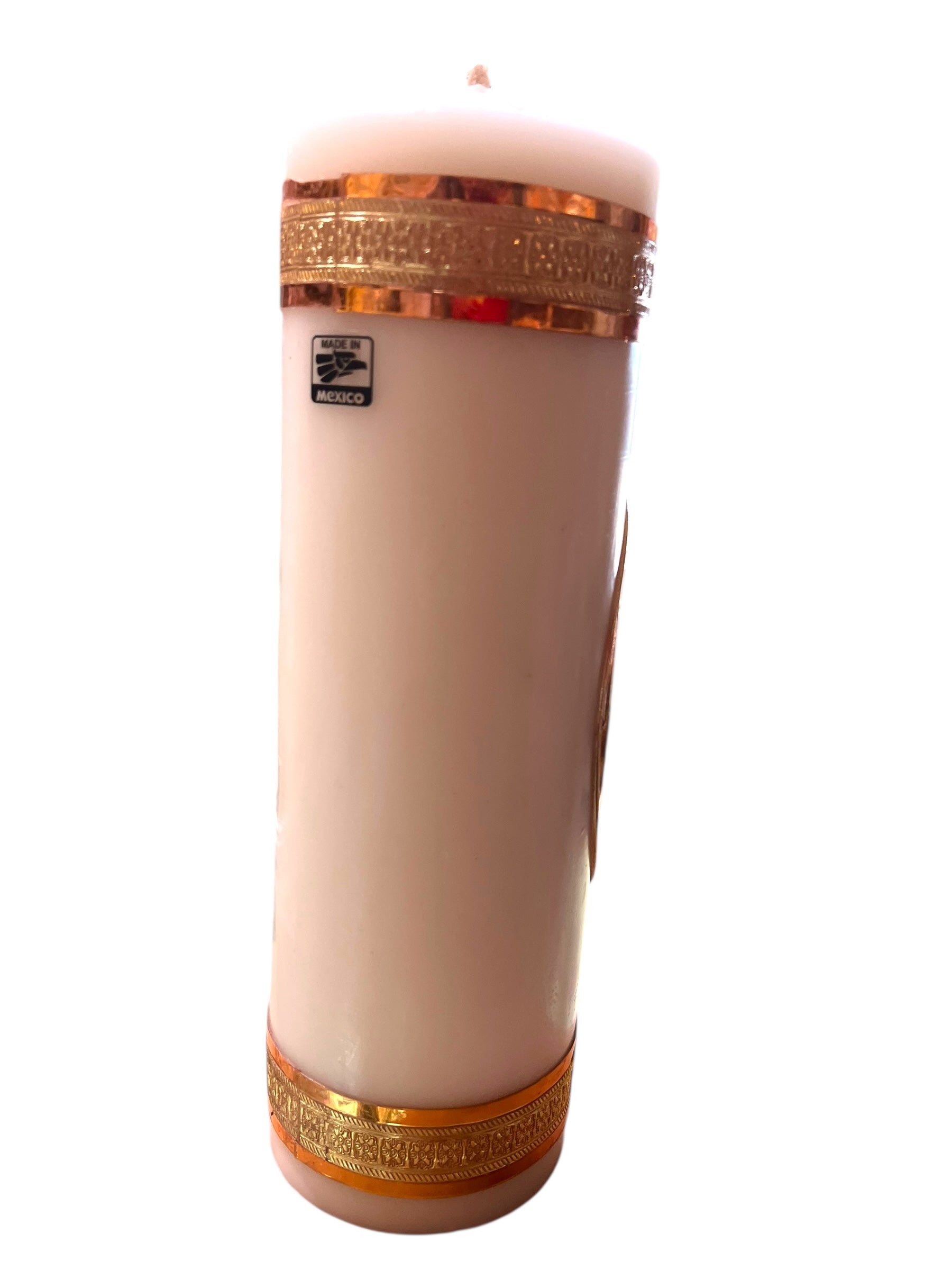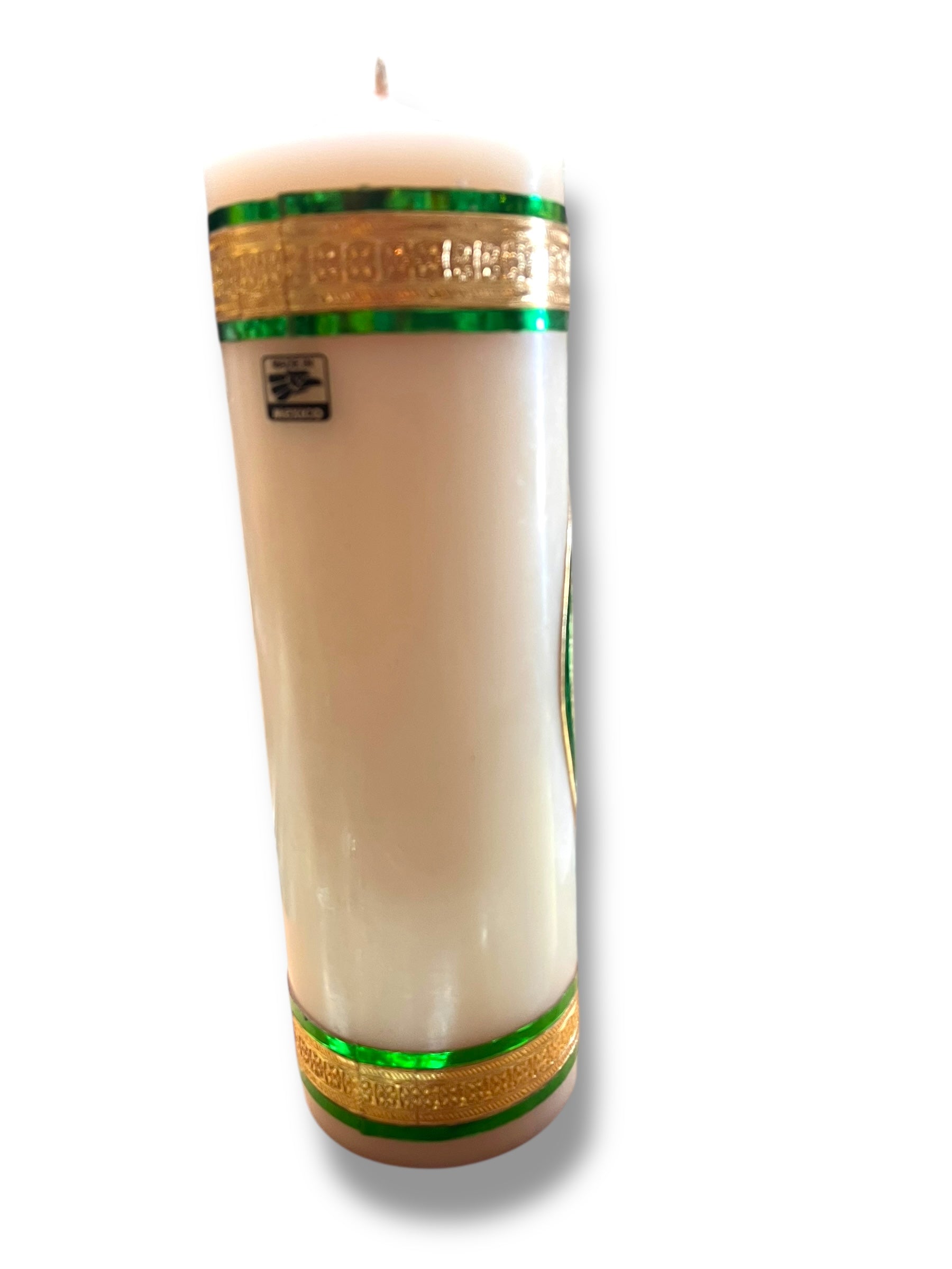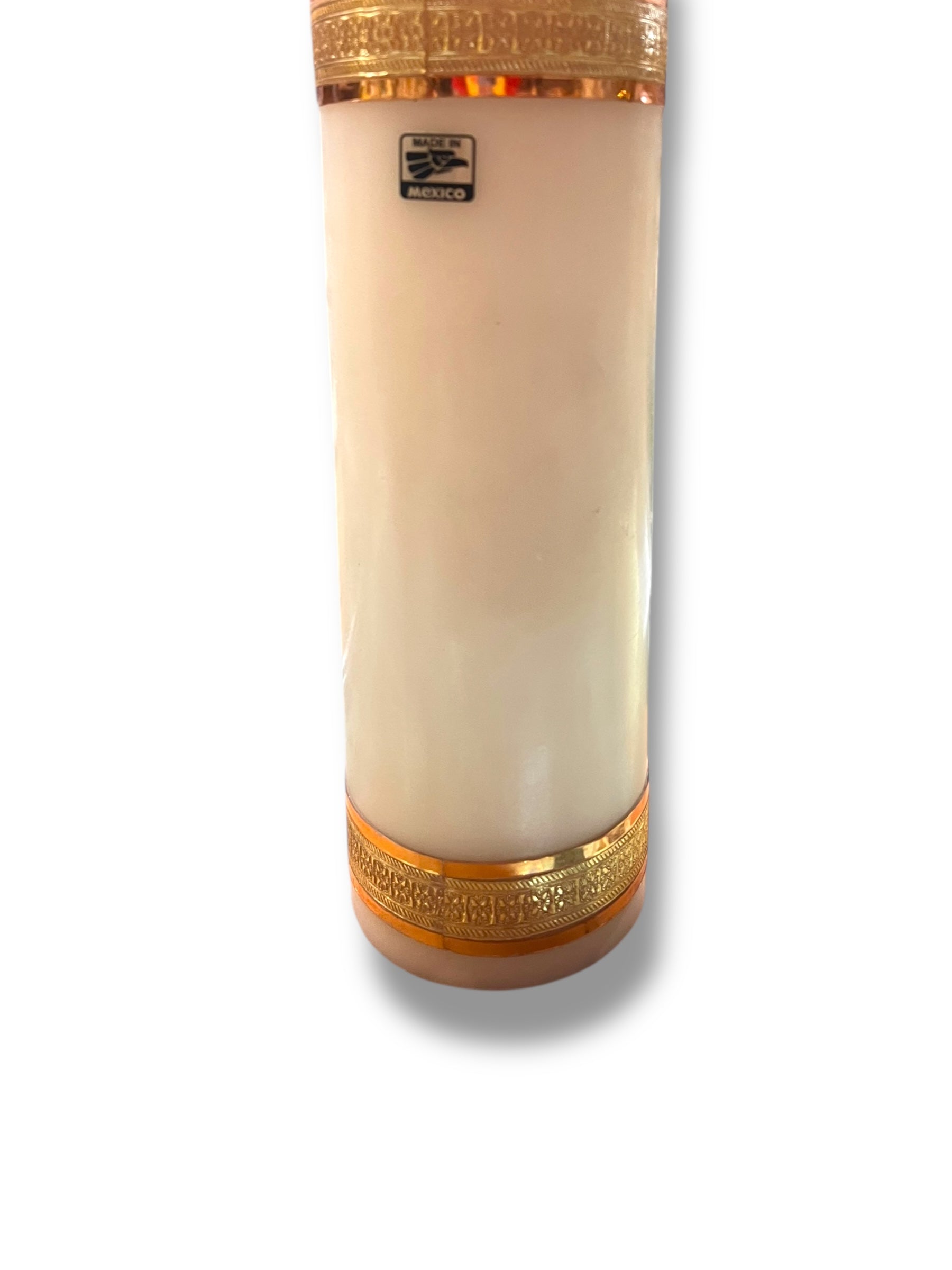 Deléitese con el lujoso cirio pascual, elaborado con cera de abeja pura y decorado con delicados adornos de cera que representan el Cordero, la Cruz, el Alfa y la Omega. El delicado aroma a canela le aporta un toque exquisito. Recuerde siempre no dejar una vela encendida sin supervisión y mantener la mecha recortada para una experiencia sin humo .