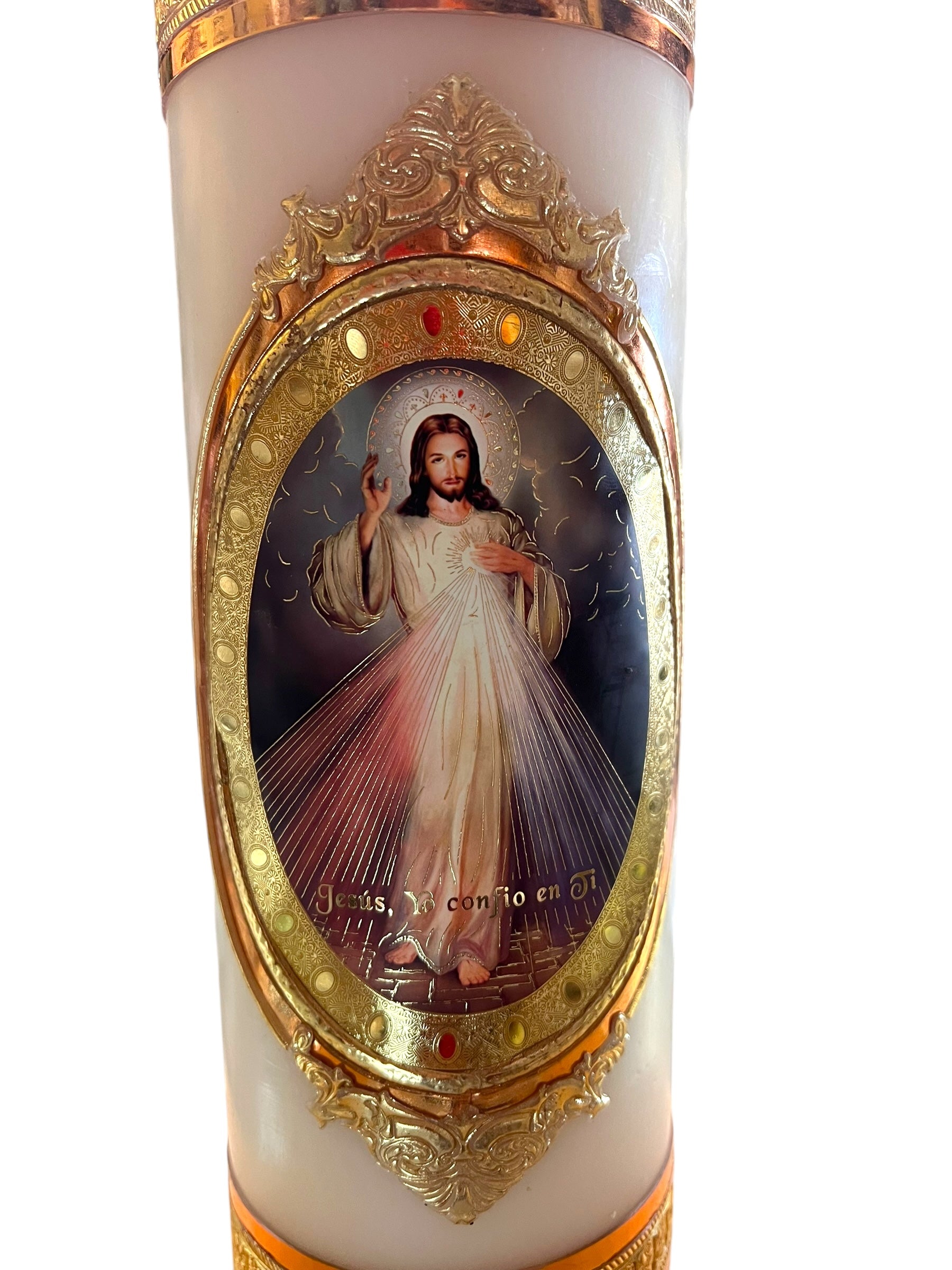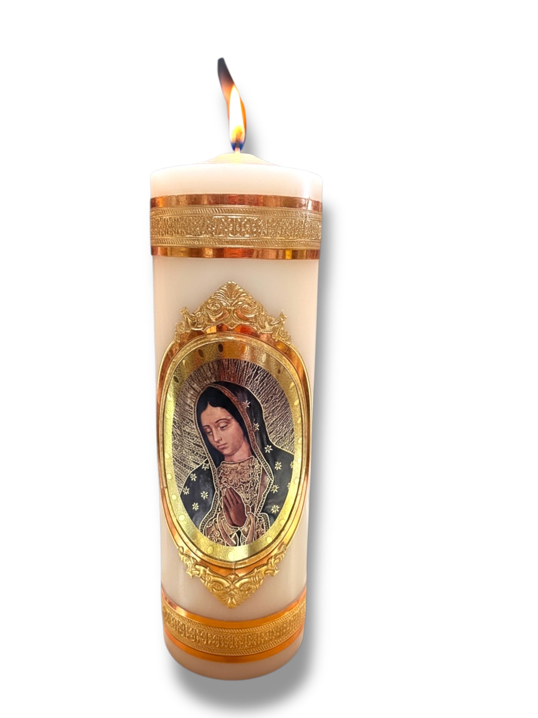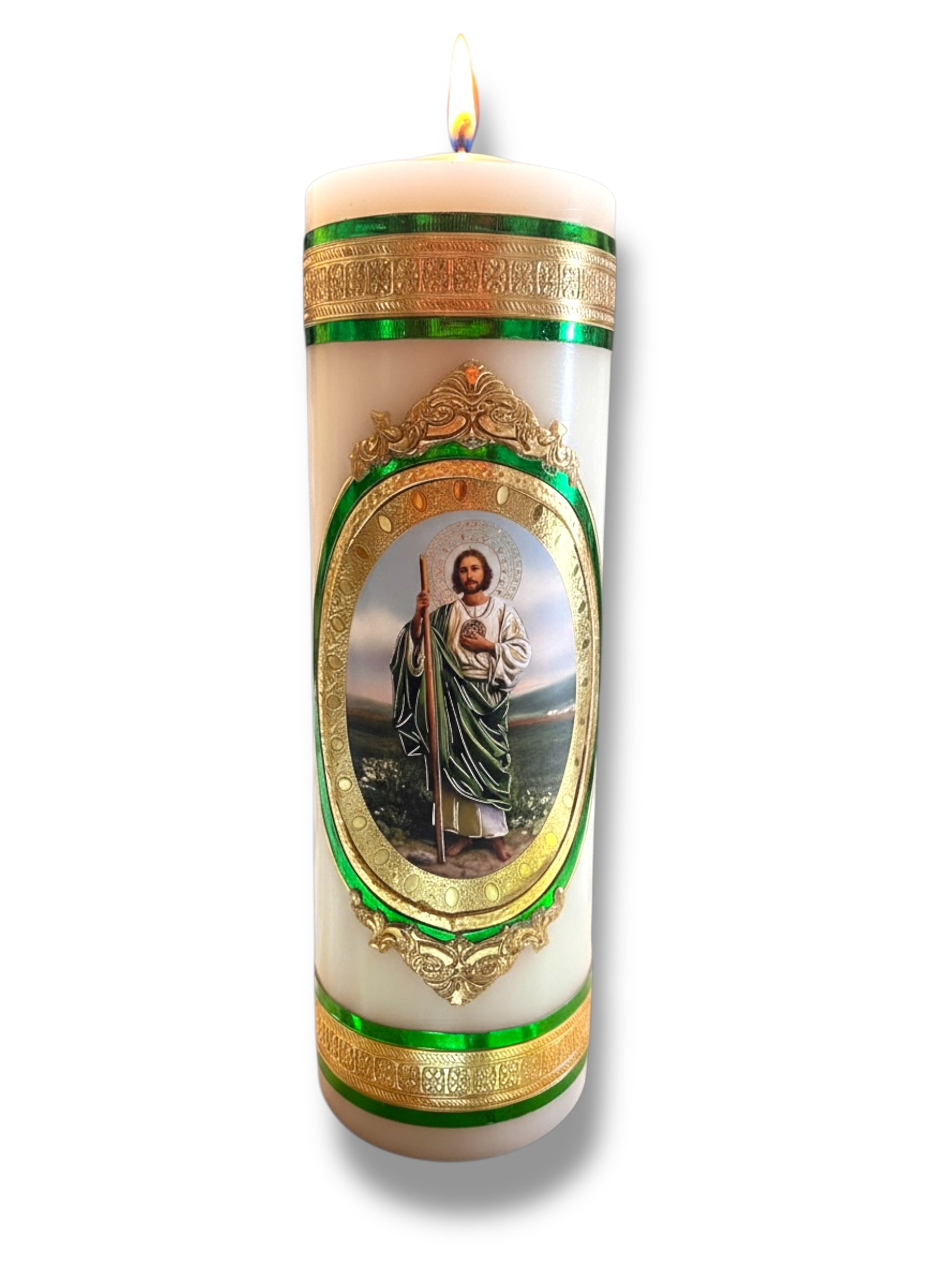 Deléitese con el lujoso cirio pascual, elaborado con cera de abeja pura y decorado con delicados adornos de cera que representan el Cordero, la Cruz, el Alfa y la Omega. El delicado aroma a canela le aporta un toque exquisito. Recuerde siempre no dejar una vela encendida sin supervisión y mantener la mecha recortada para una experiencia sin humo .
