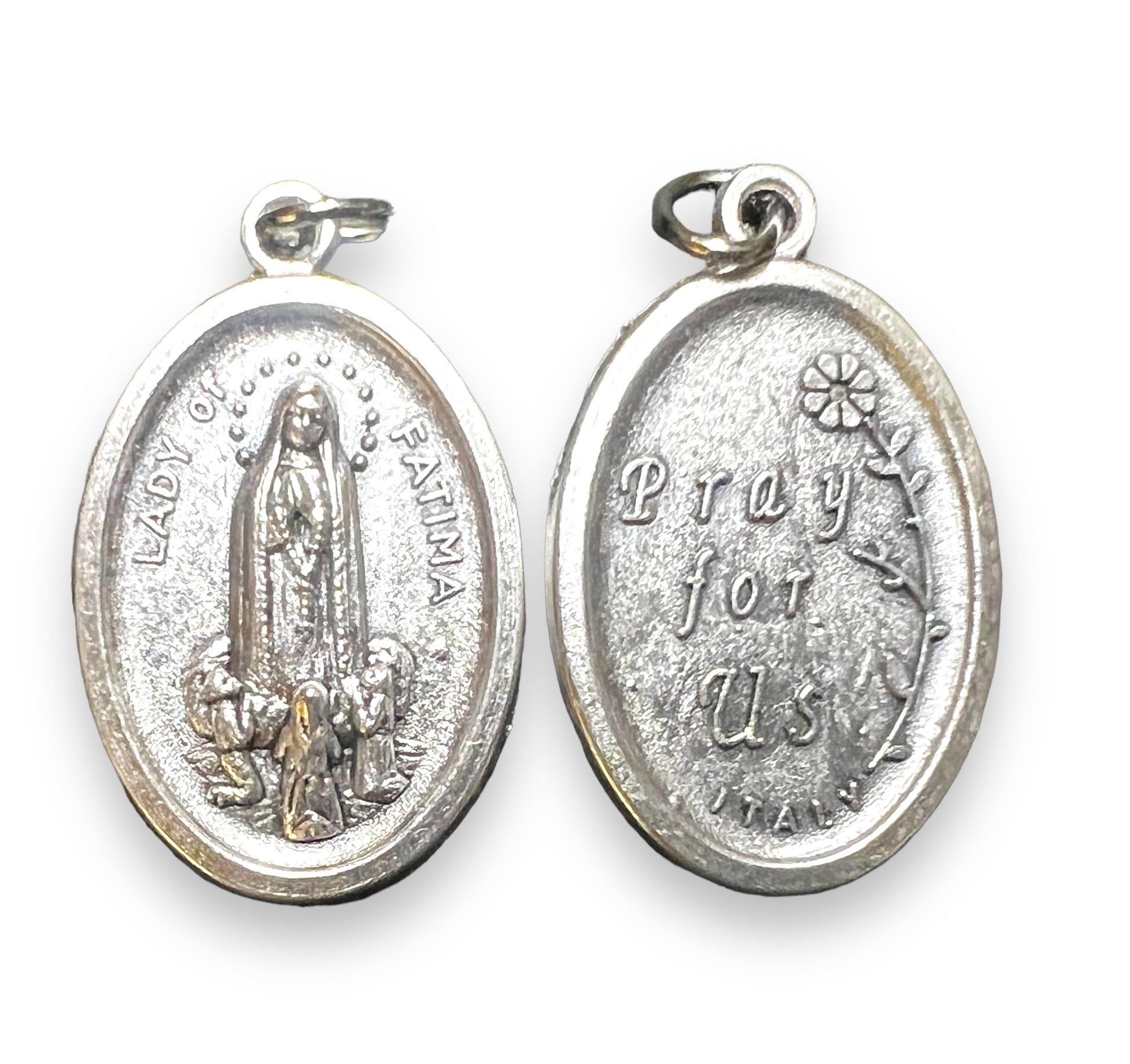 Experimente el poder de la protección con nuestras hermosas Medallas Italianas Oxidadas. Esta medalla con la imagen de Nuestra Señora de Fátima, hecha en Italia, es una pieza impresionante que no se oxida. Lleve su protección siempre consigo.