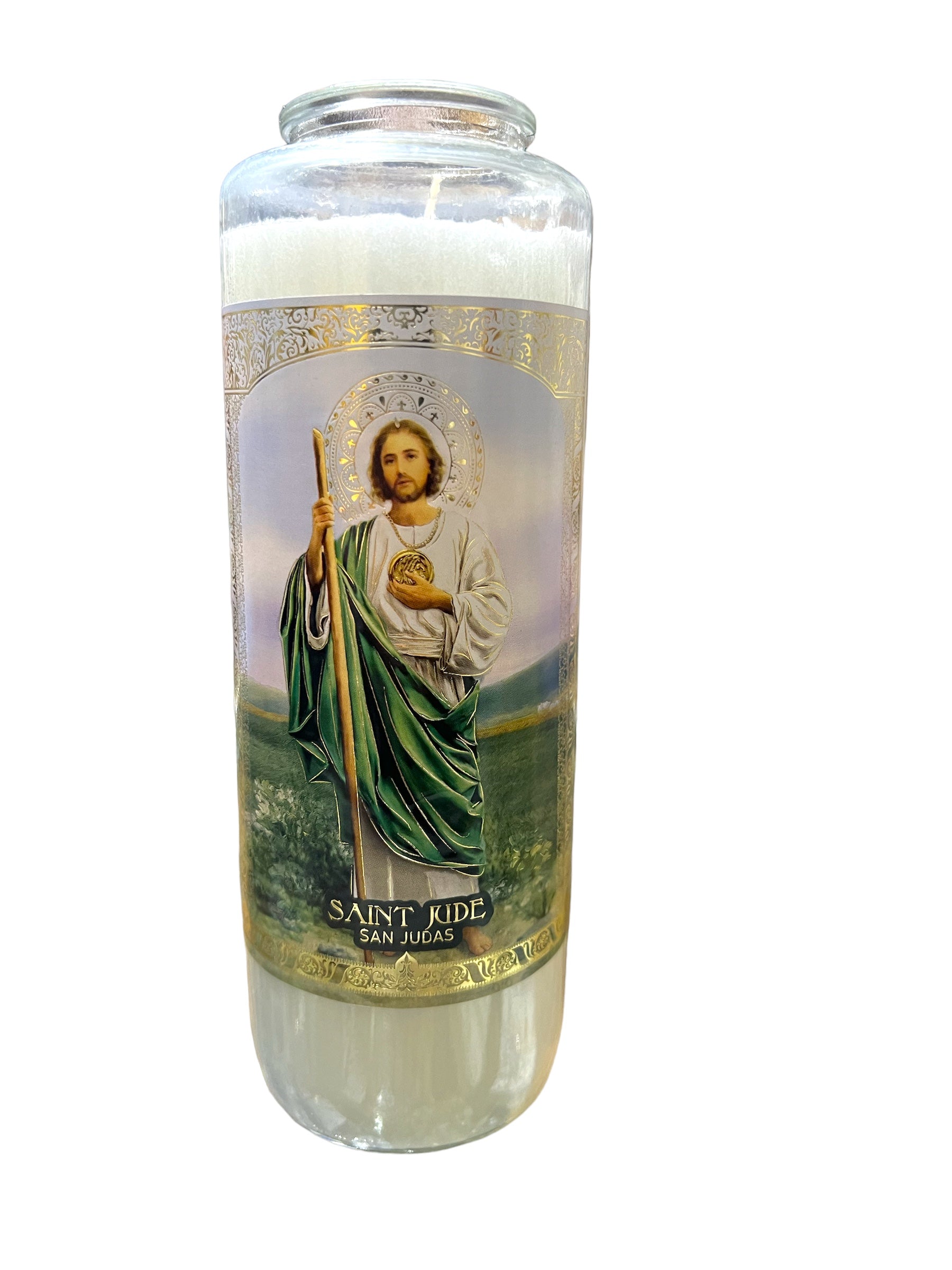 Experience a sense of devotion and tranquility with the St. Jude Thaddeus devotional sanctuary candle. Crafted with the highest quality wax and poured into a safe and long-lasting glass container, this candle offers a 6-day burn time. You'll enjoy a uniform color, smoothness, and smokeless flame that will not damage your walls.