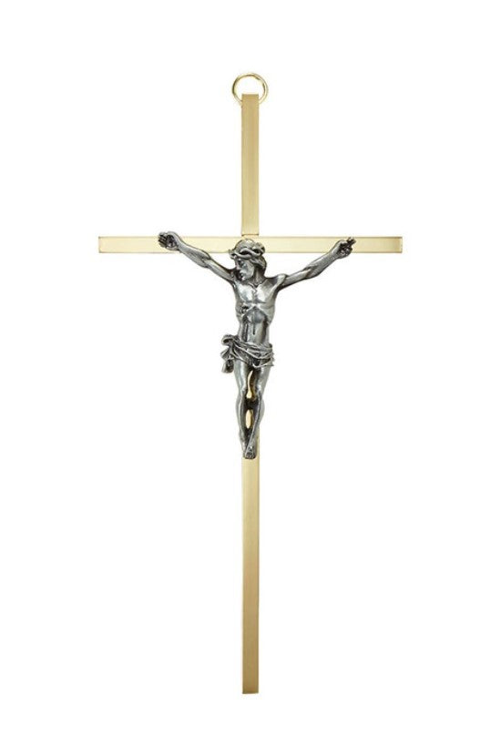This brass cross comes with a pewter finish corpus. Each cross from James Brennan™ is plated and polished on all four sides. The hand sculpted antique pewter finished emblem adds dimension to each piece. Comes boxed for easy gift-giving.