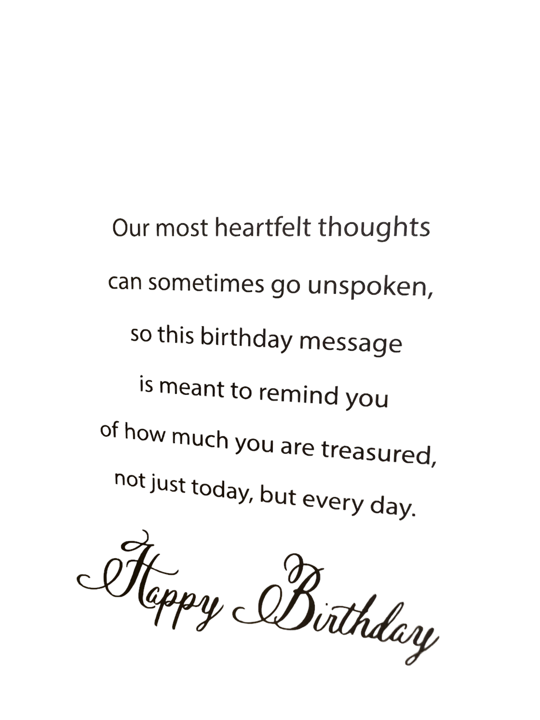 Our most heartfelt thoughts, can sometimes go unspoken, so this birthday message is meant to remind you of how much you are treasured, not just today, but every day.