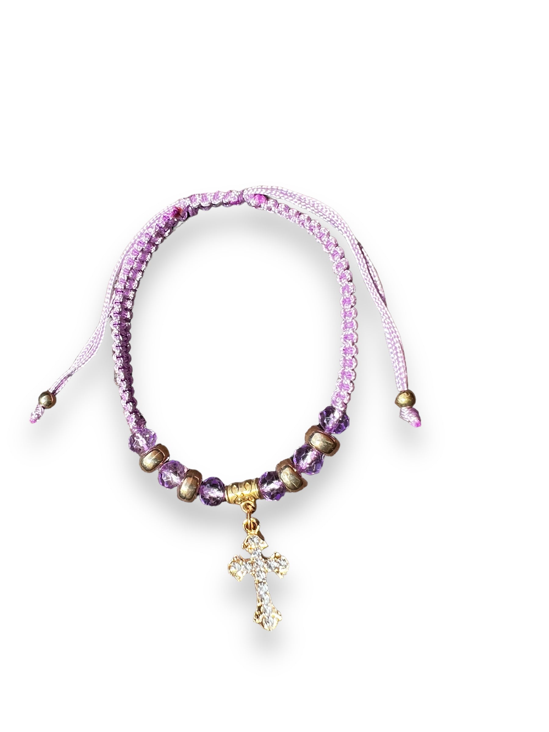 BRACELET: LAVENDER THREADED W/ CROSS CHARM
