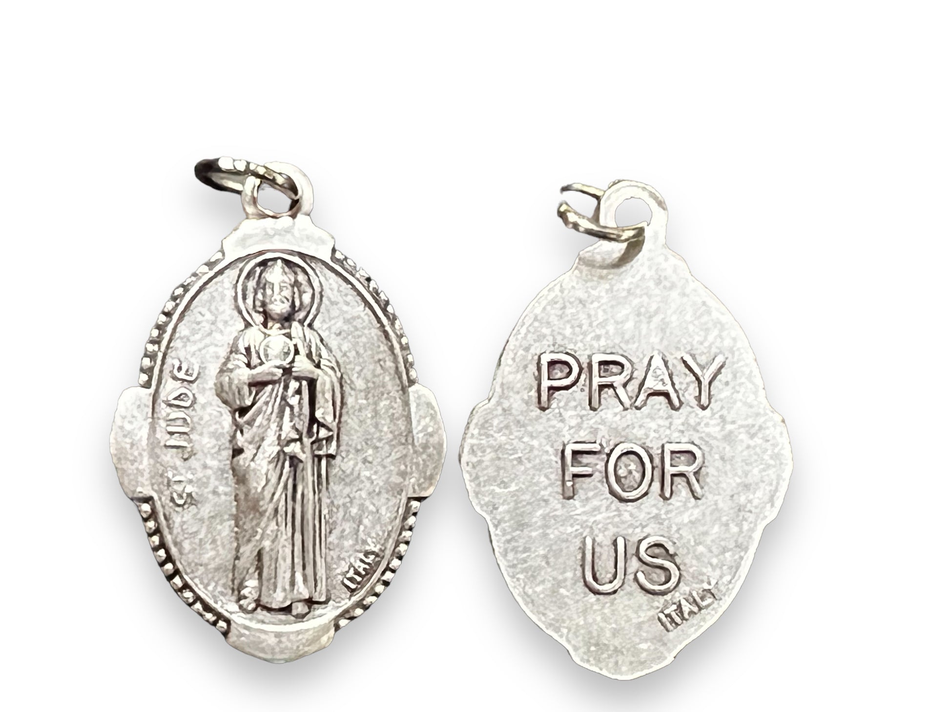 Experience the power of protection with our beautiful Oxidized Italian Medals. This medal with St. Jude (Patron Saint of the Impossible and Desperate/Lost Causes), made in Italy is an stunning piece that will not rust and features a Pray for Us inscription for added spiritual significance. Carry your guardian angel with you always.
