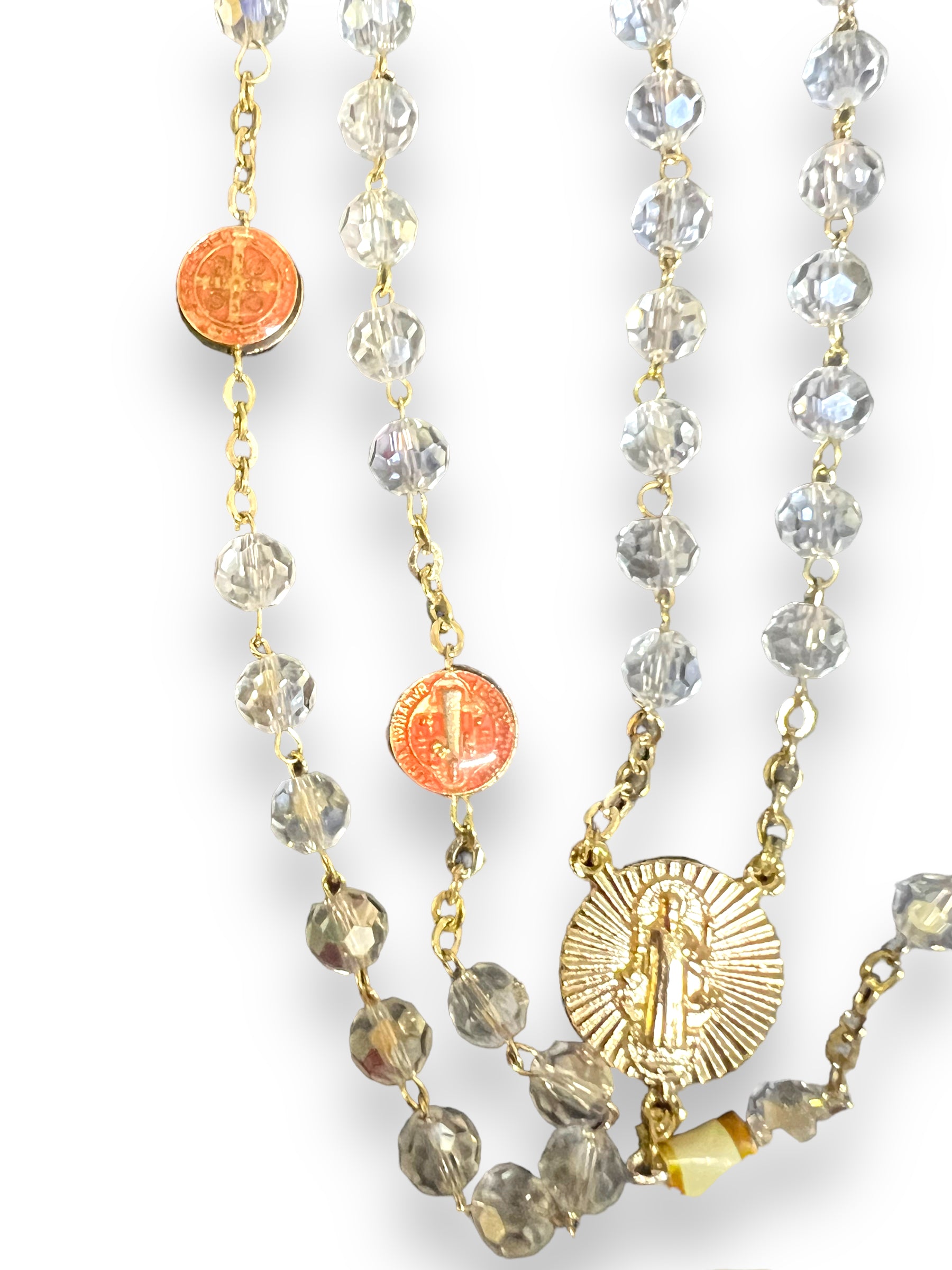 ST. BENEDICT GLASS BEADS ROSARY | ROSARIO DE VIDRIO DE SAN BENITO