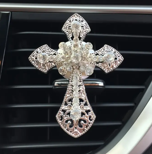 1PC CAR AIR FRESHENER, ARTIFICIAL DIAMOND CROSS JESUS VENT CLIP
