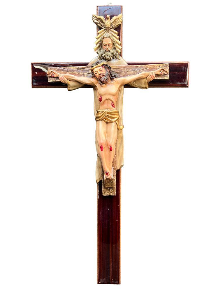 Trinity Wooden Cross with Resin image. Measures about 24", made in Mexico