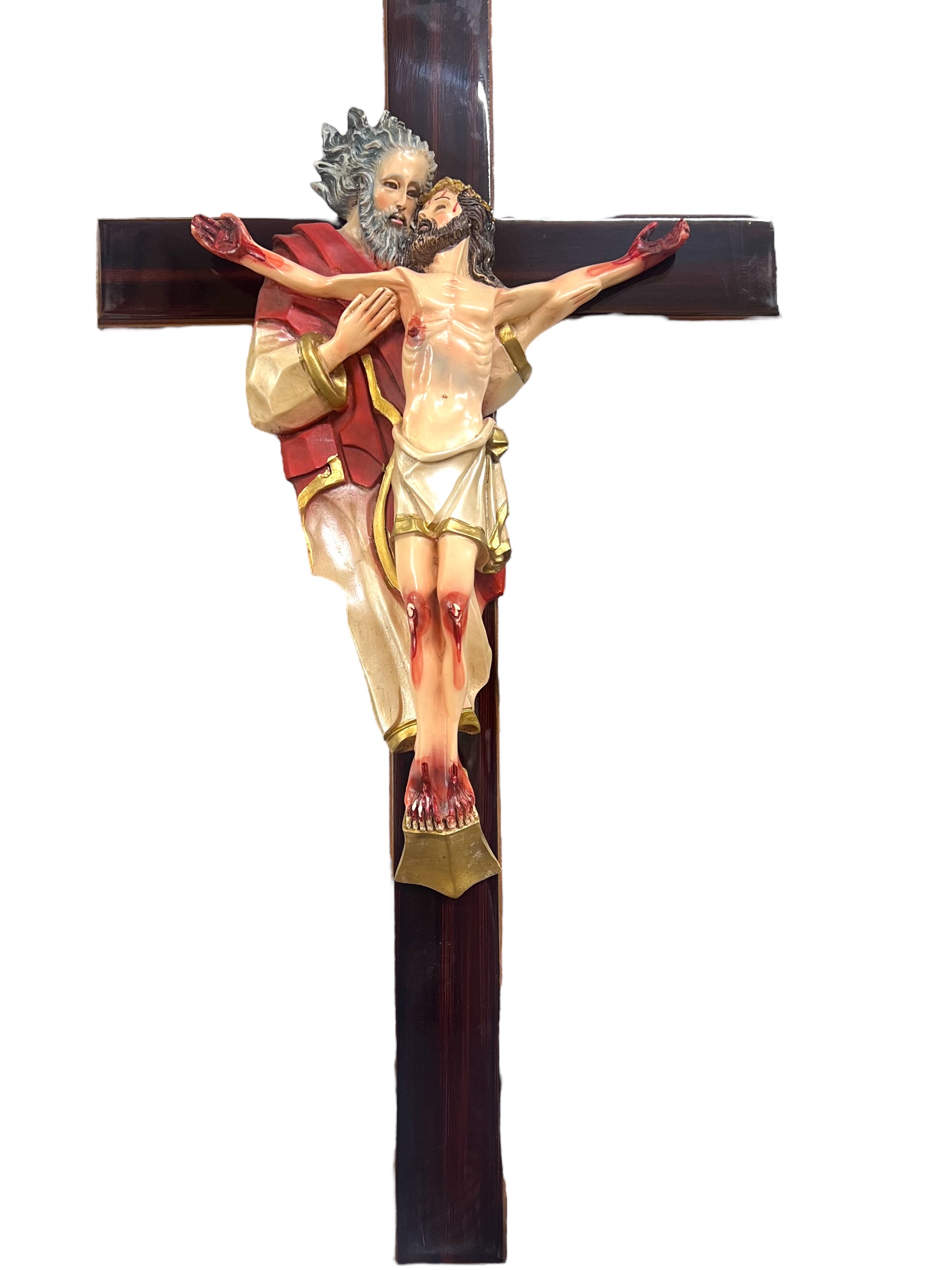 Cruz de madera con la Divina Providencia (Trinitaria) en resina. Cruz mide 24". Hecho en México.