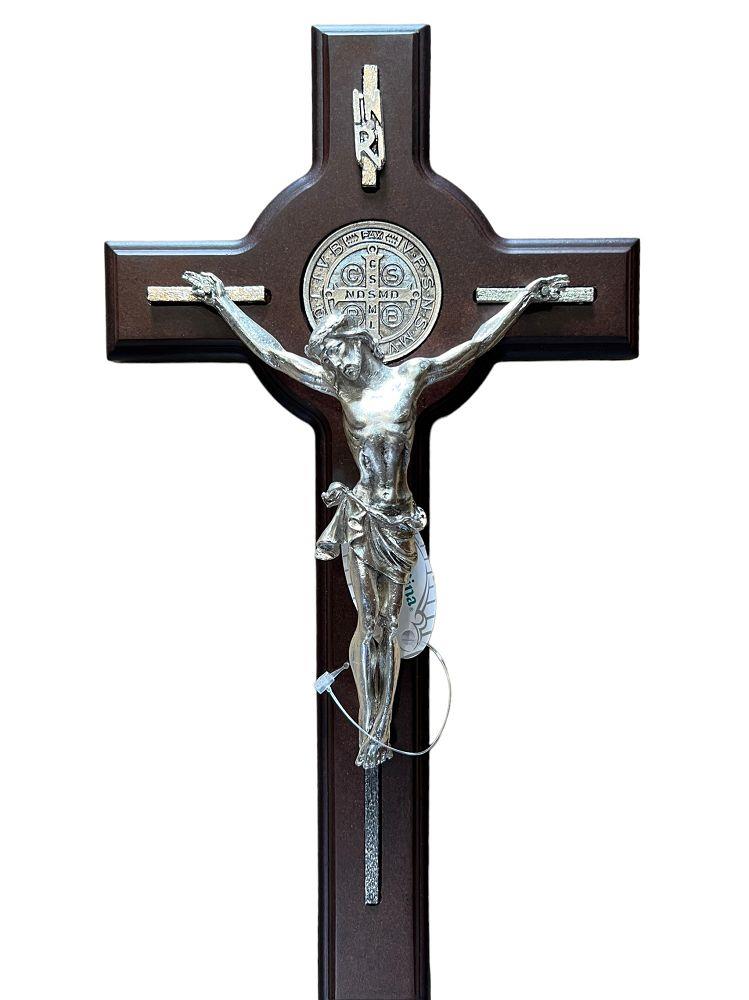CRUZ SAN BENITO CUERPO PLATEADO / WOODEN ST. BENEDICT CROSS WITH SILVER BODICE