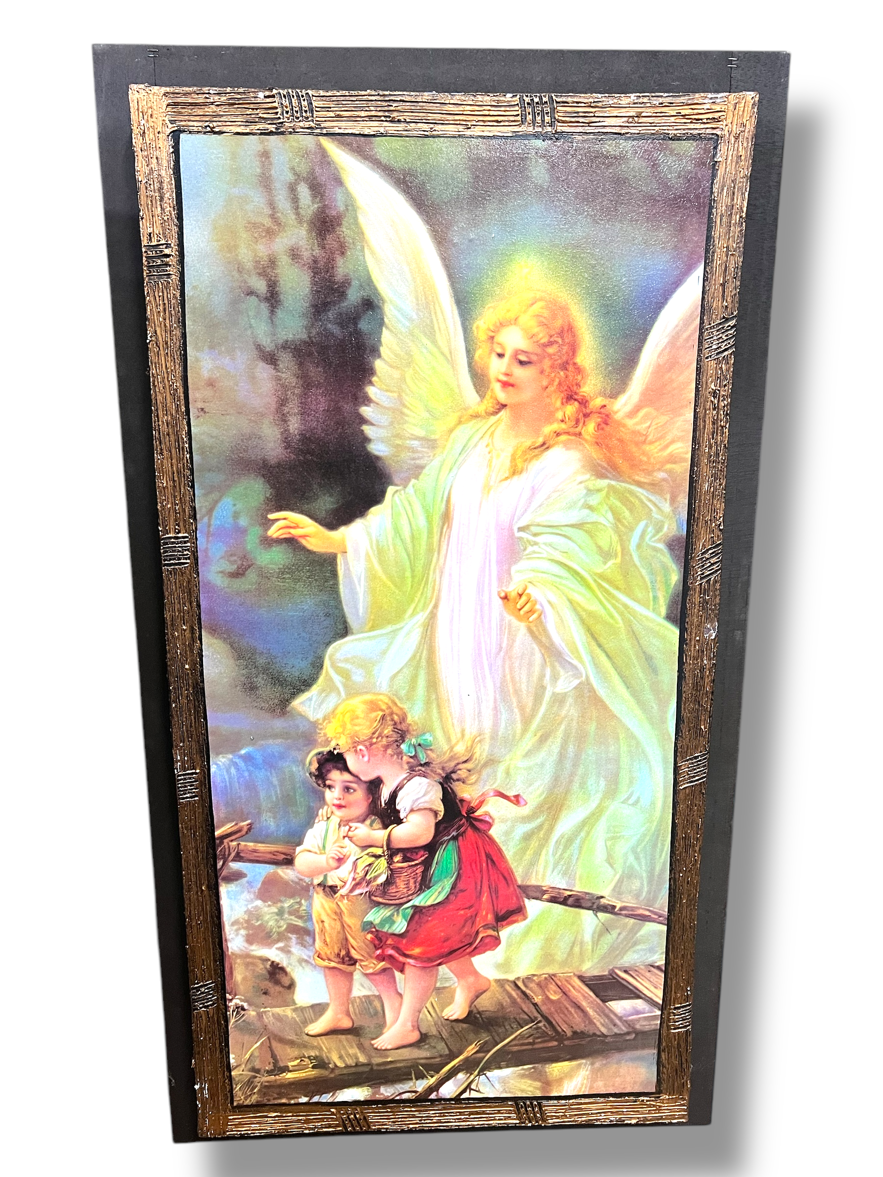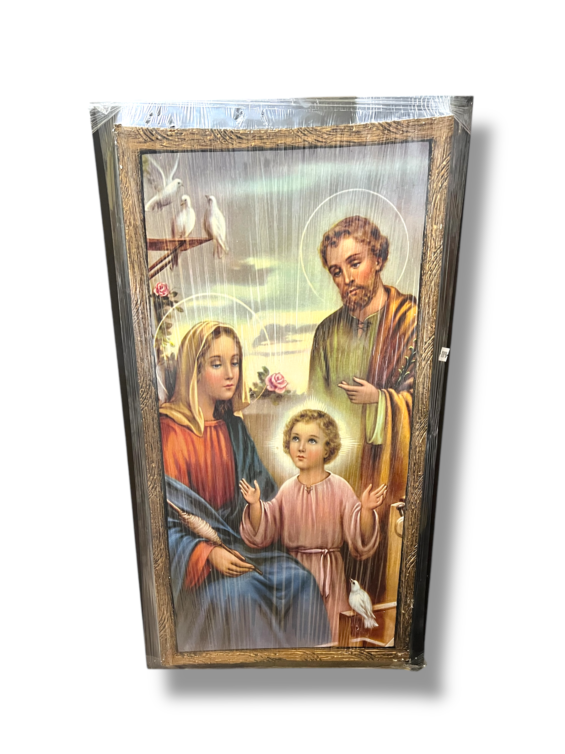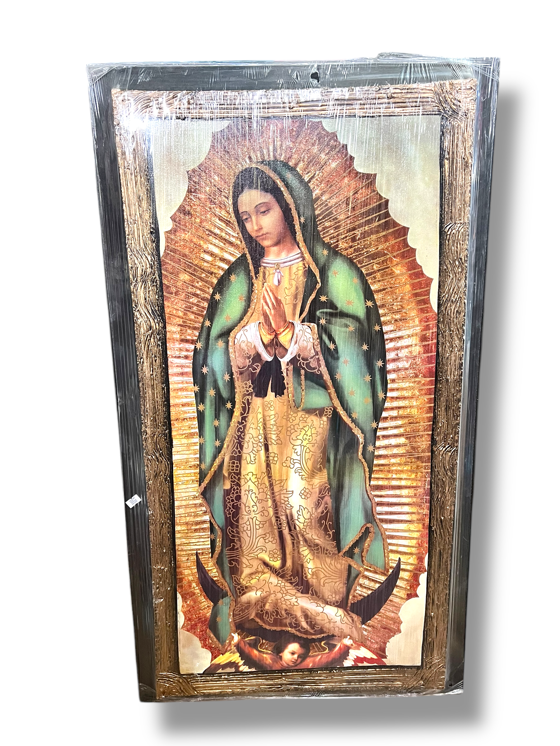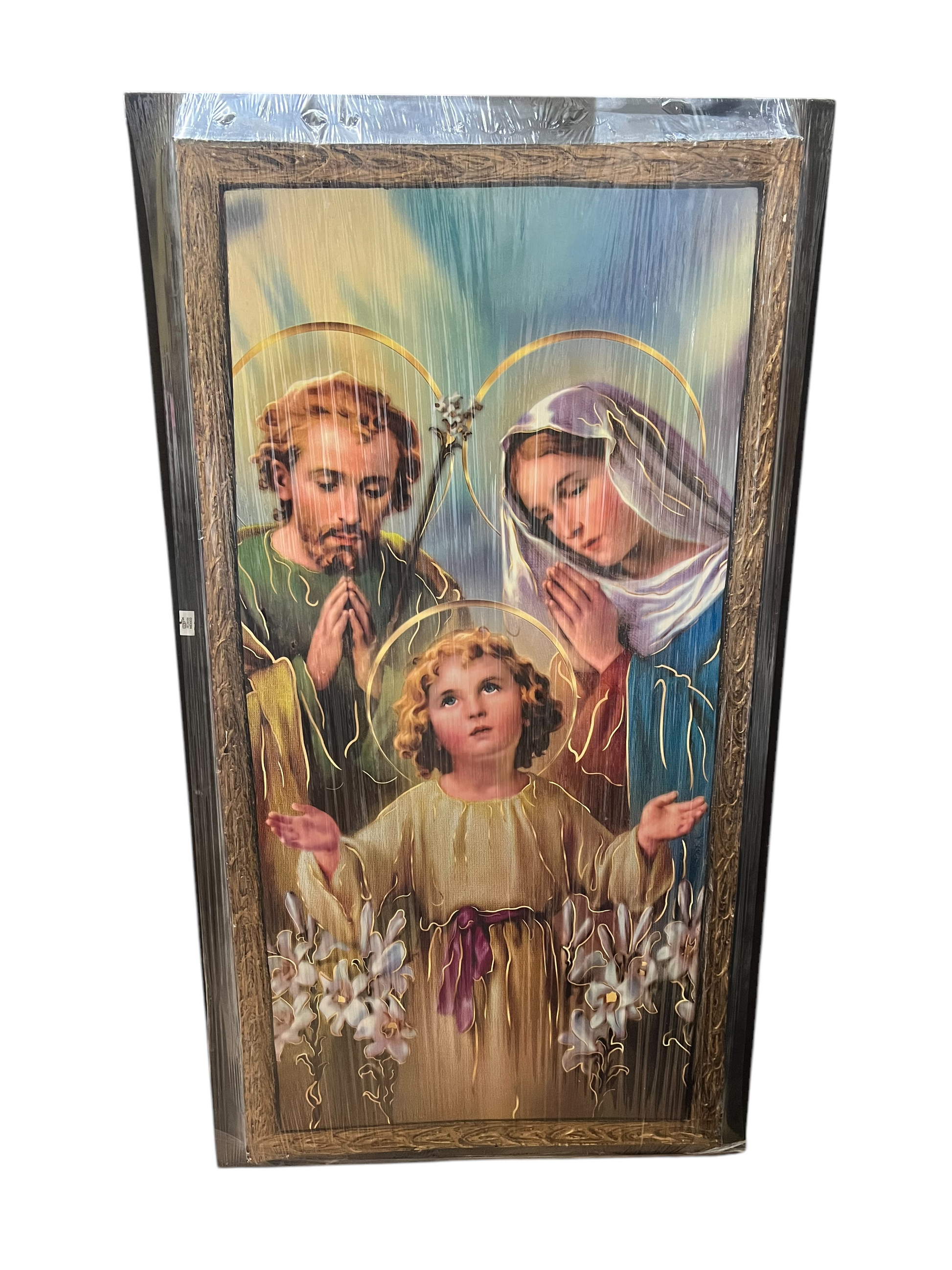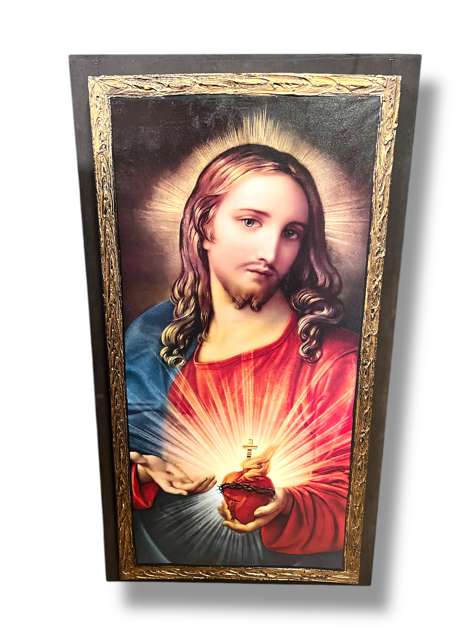 34"x18" Silk-screened printed canvas (oil painting replica style) with stylish texturized edging mounted on rustic wooden supported frame. Overall frame size 38"x21"