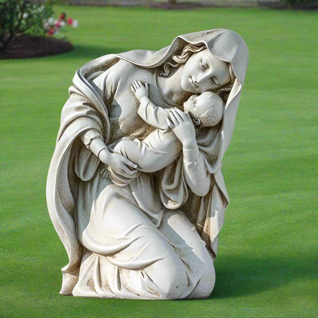 KNEELING MADONNA & CHILD GARDEN STATUE