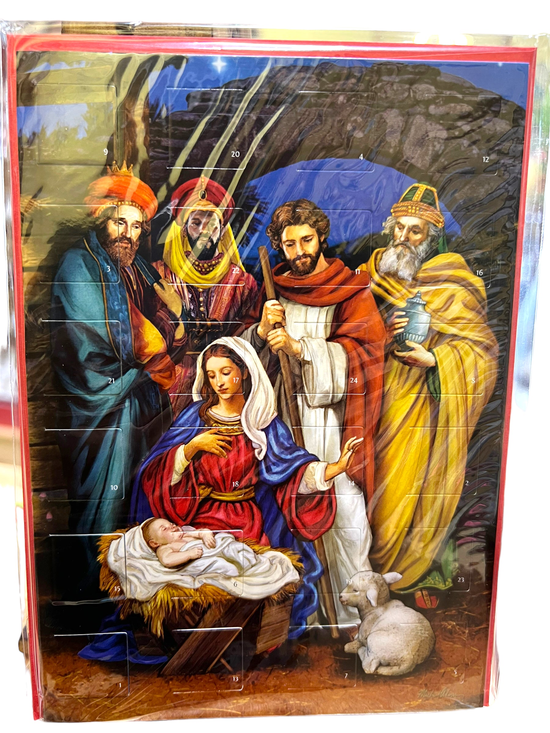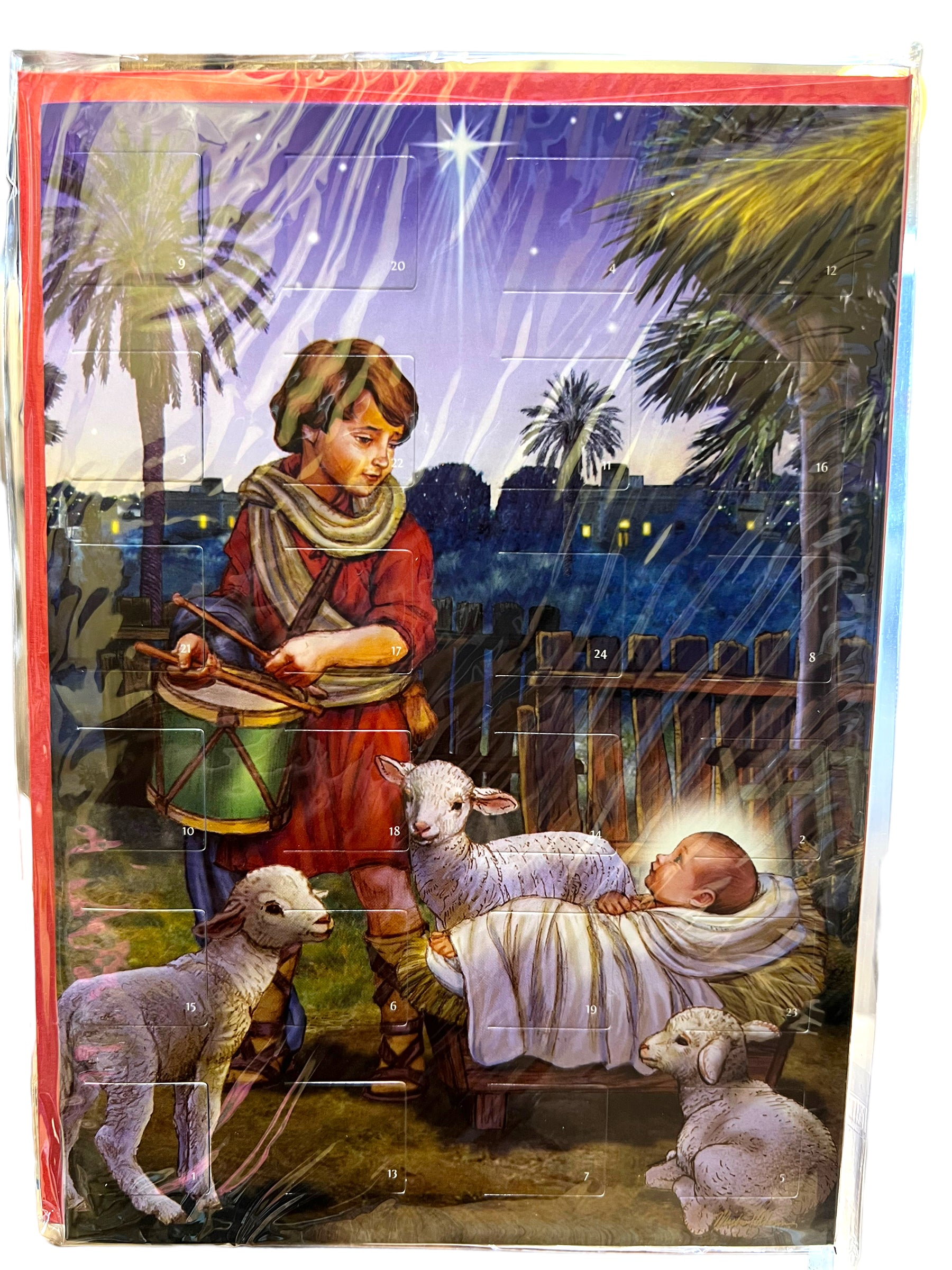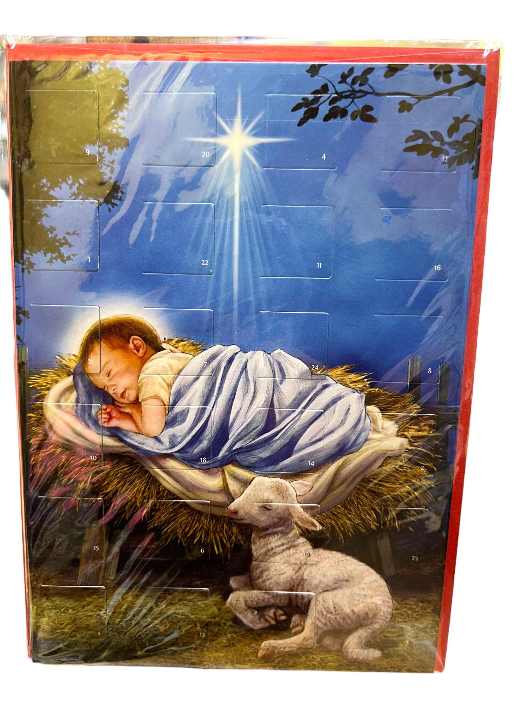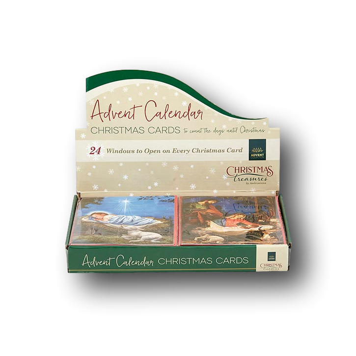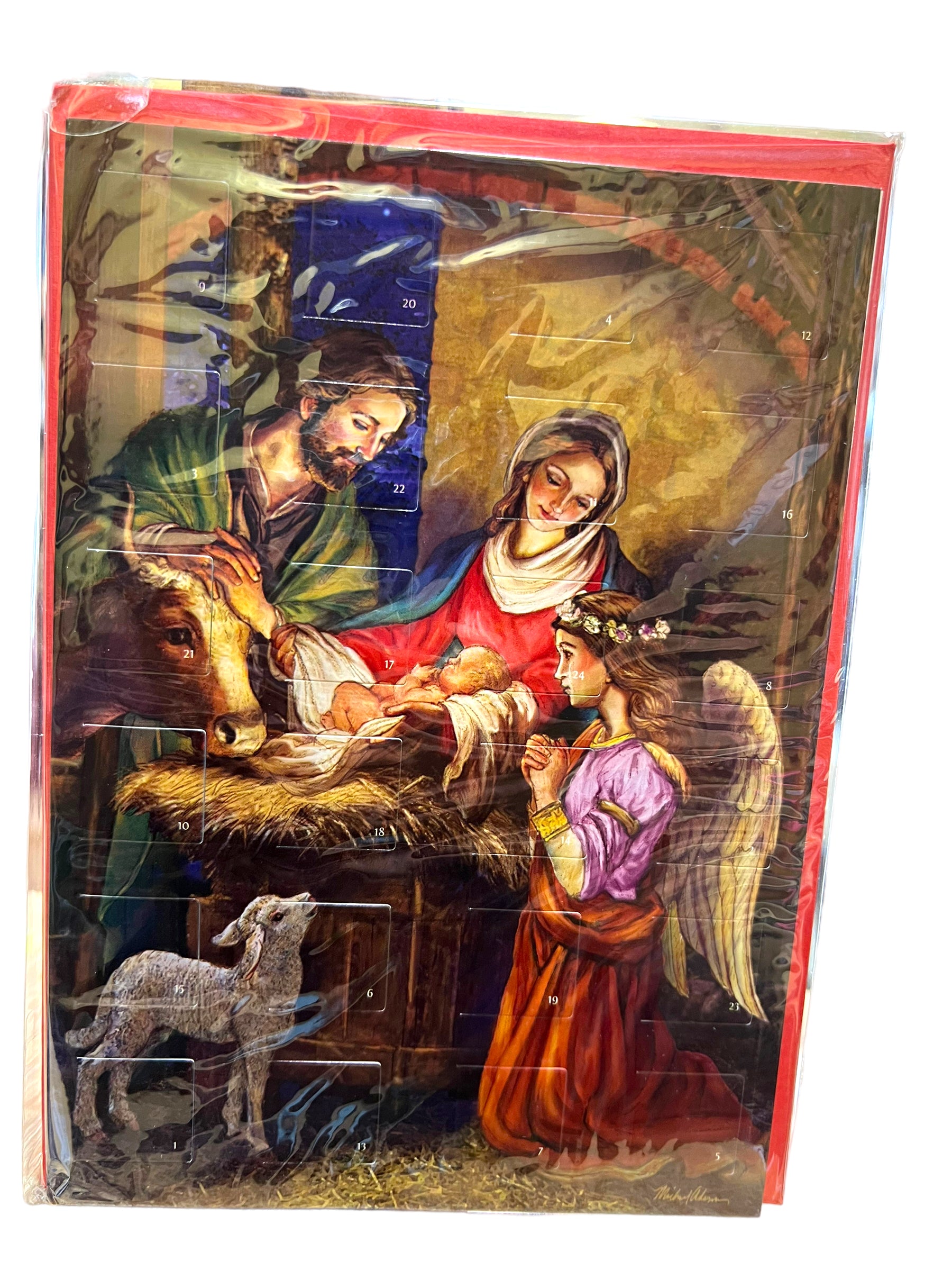Mini advent calendar card with envelope. White Card/Red Envelope -- 5" W x 7" H Folded