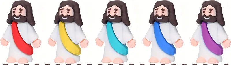 Enhance your religious celebrations with these high-quality mini Jesus figures. Available in a variety of 7 vibrant assorted colors, including red, yellow, green, light blue, shine blue, brown and purple, each measuring 1.2x1.4 inches/3x3.5 cm. Share with friends to show your care and kindness, as there are plenty to go around. Crafted from durable and smooth PVC rubber materials, these figures will not easily fade, deform or break, ensuring they will stand the test of time. Bring a festive and rich atmosphere to churches, classrooms, baptisms, bible studies and more with these exquisite Jesus dolls. Make your Easter decorations stand out with these elegant and charming mini figures, perfect for egg fillers, party supplies, or as standalone decorations. Gift these unique and adorable decorations to loved ones and colleagues to share the joy and inspiration of the holiday. Versatile and fun, these small Jesus figurines can decorate Easter parties, offices, bedrooms, tables