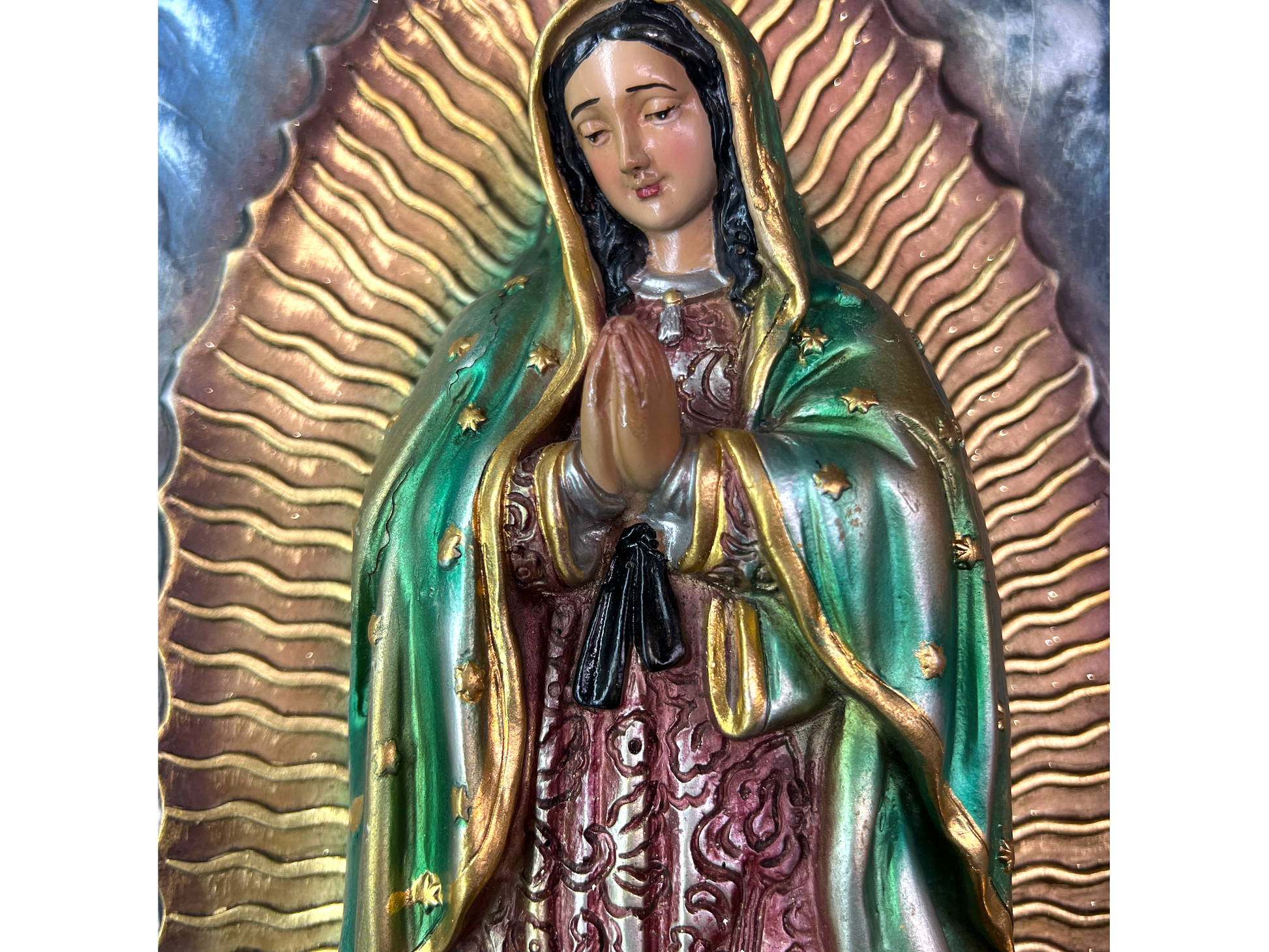 Cuadro de la Virgen de Guadalupe en relieve (3D) hecho en resina, pintado a mano. Hecho en México. Mide 20"x14".
