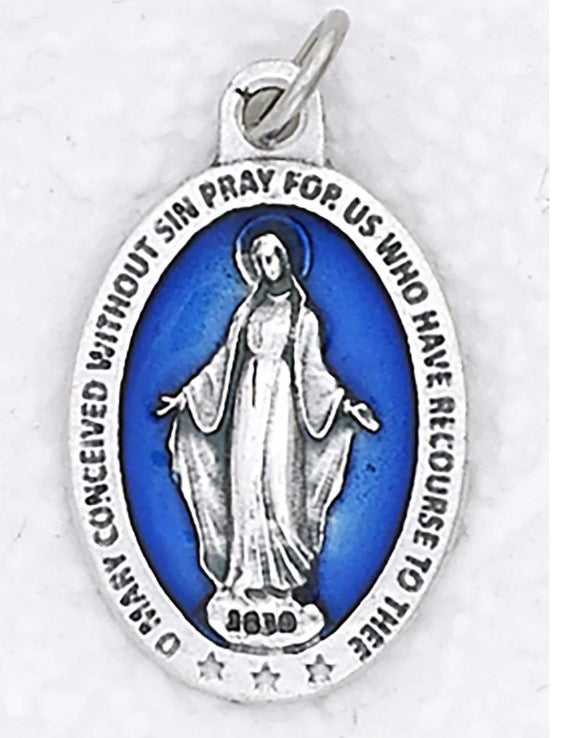 OXIDIZED ITALIAN MEDAL: BLUE ENAMELED 1"H: OUR LADY OF MIRACULOUS MEDAL