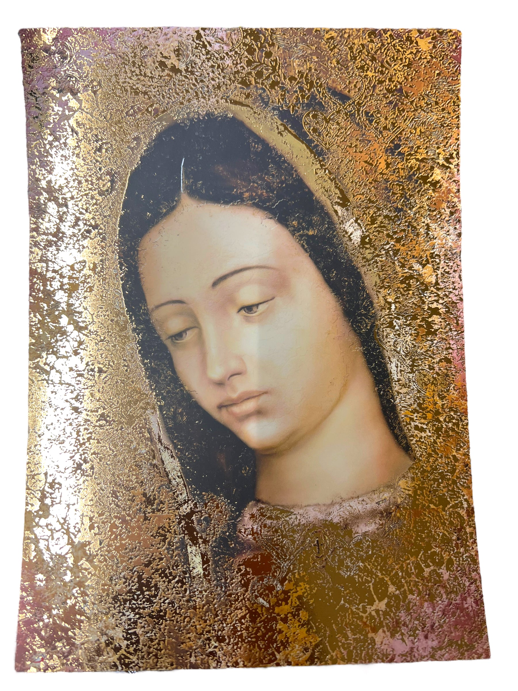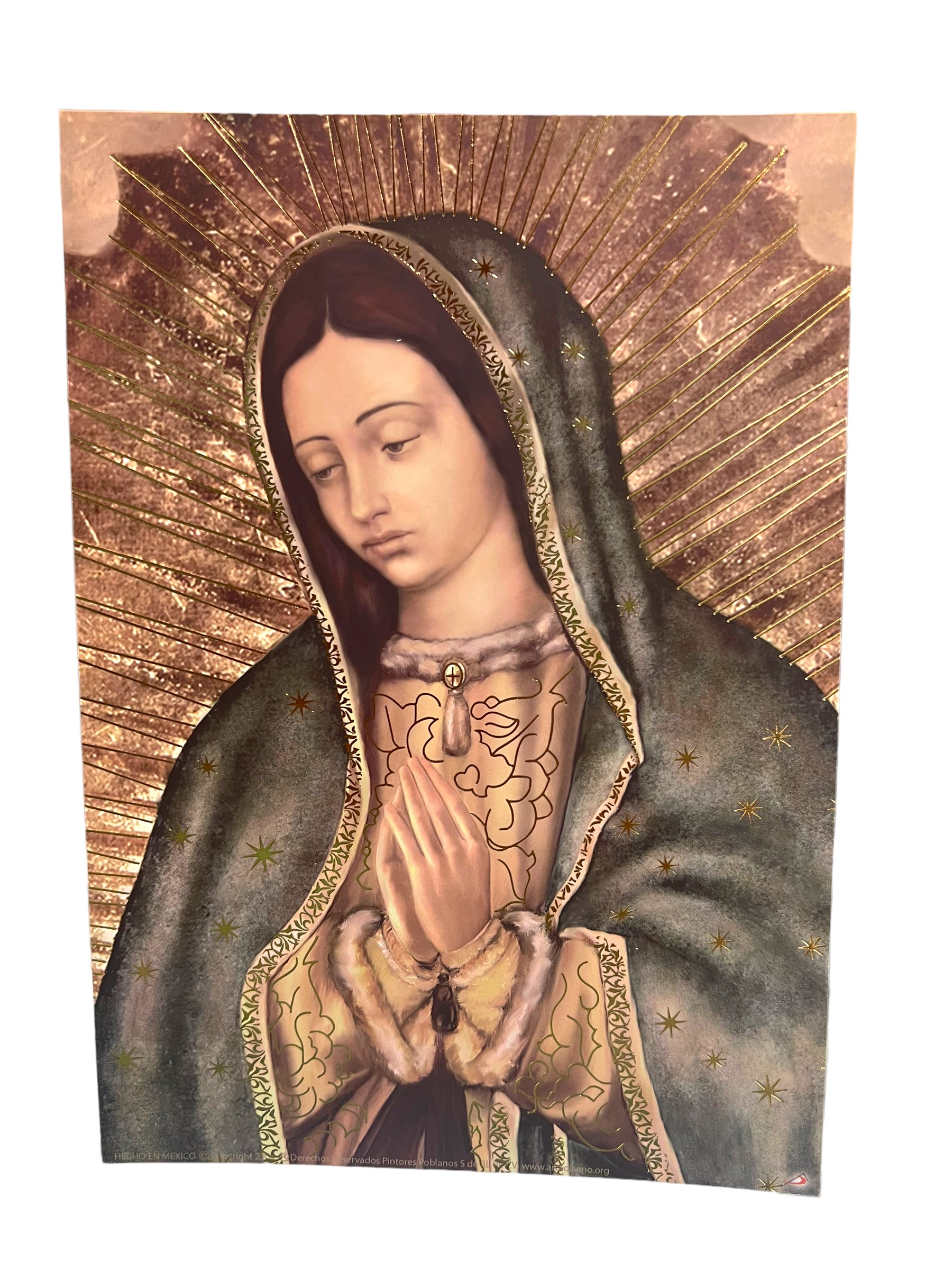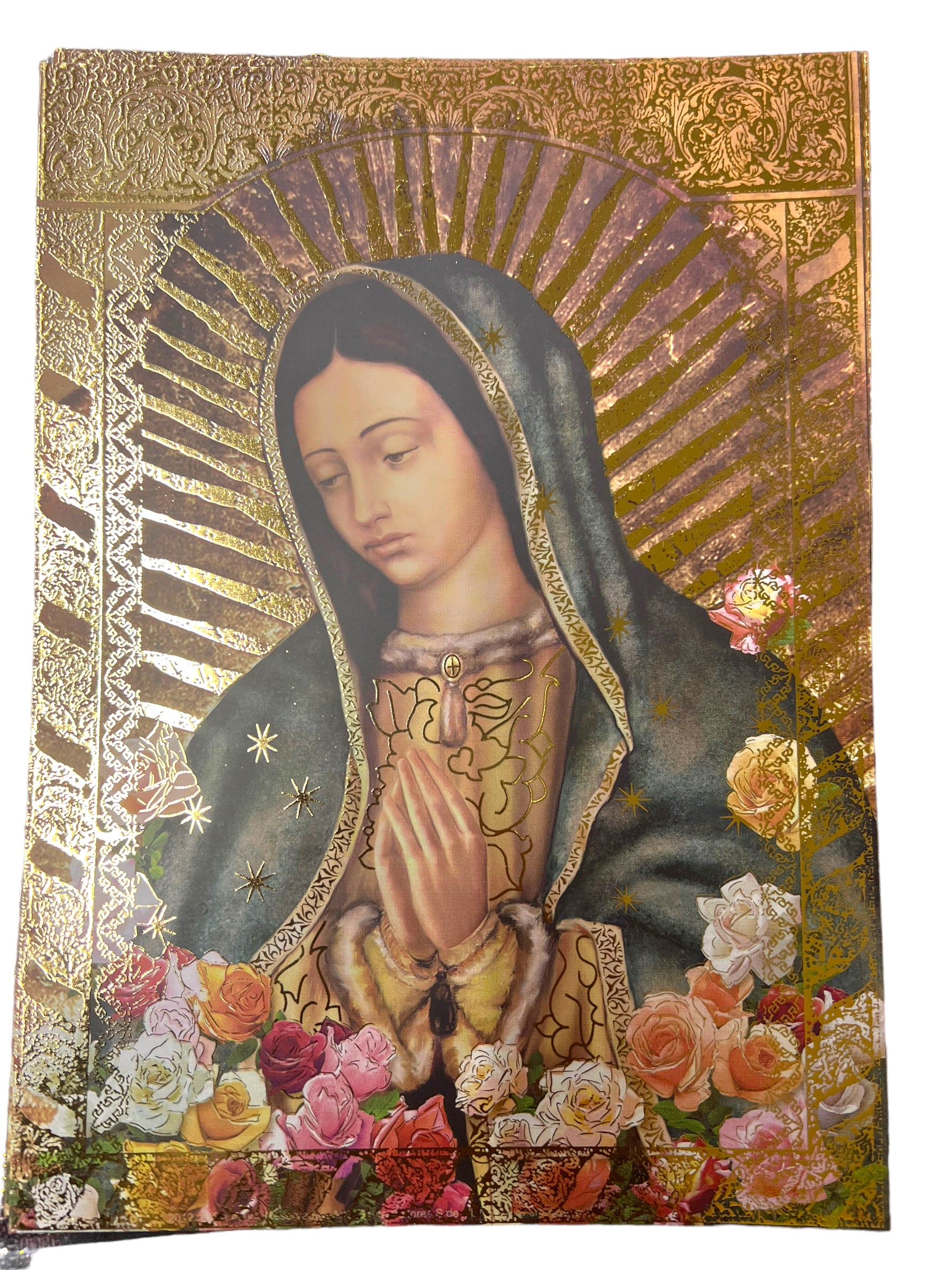 Our Lady of Guadalupe large postcard for large print bible, 8"x6" full color with gold foil accents.