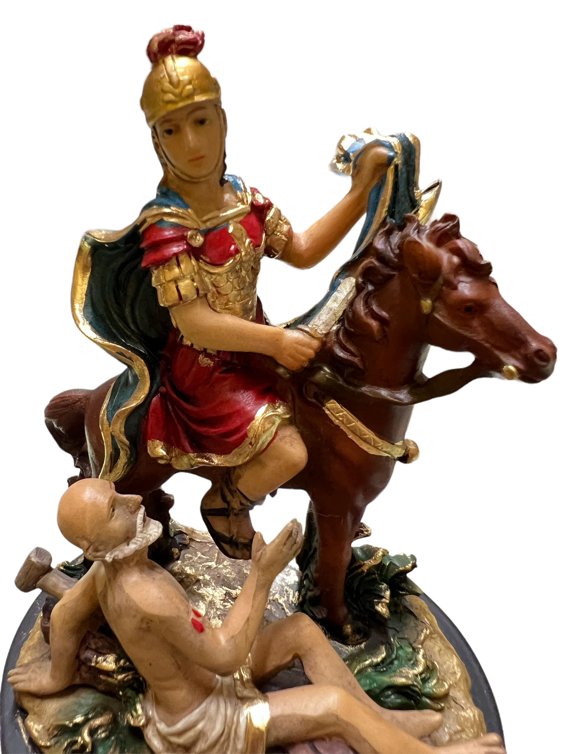 6.5" Statue of st. Martin of Tours. Hand-painted, with Metalic finish and gold accents. Made of resin in Mexico.