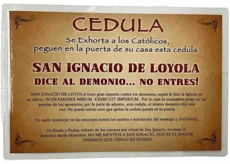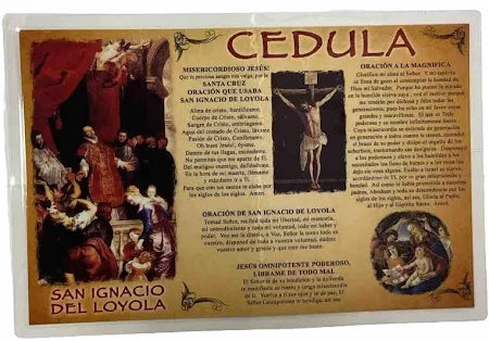 San Ignacio de Loyola: Cédula (Spanish only). Para poner arriba de su entrada principal. Contiene -Magnificat, Anima Cristi, In Deamones mirum exercuit imperium -para retirar al enemigo. Doble carátula.
