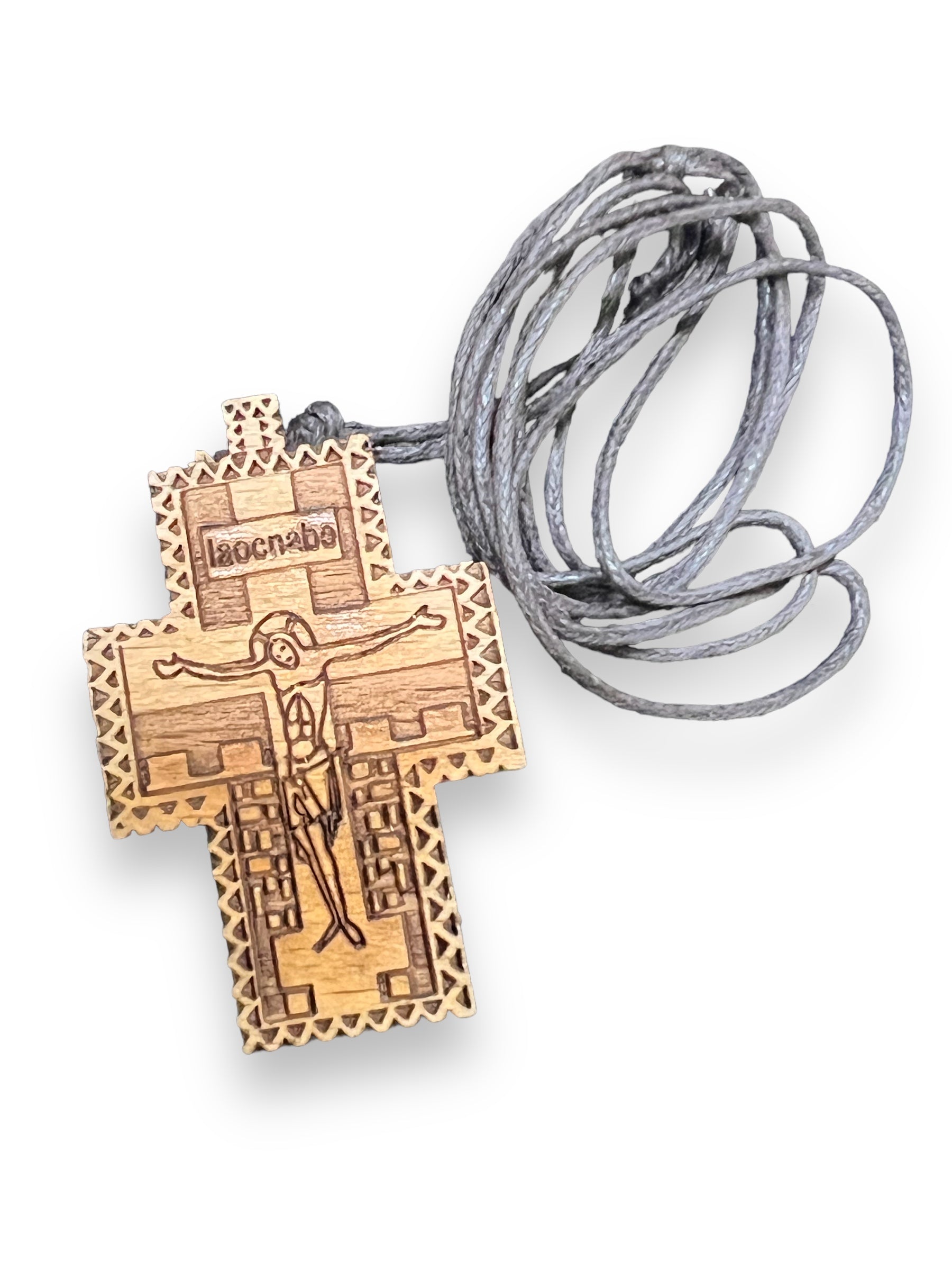 WOODEN CROSS W/ ROPE: CARVED BODICE